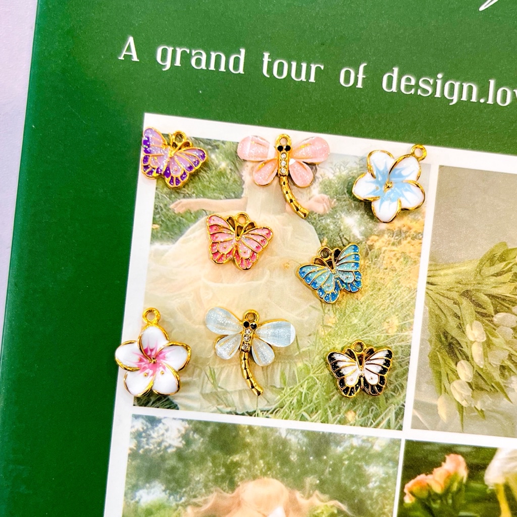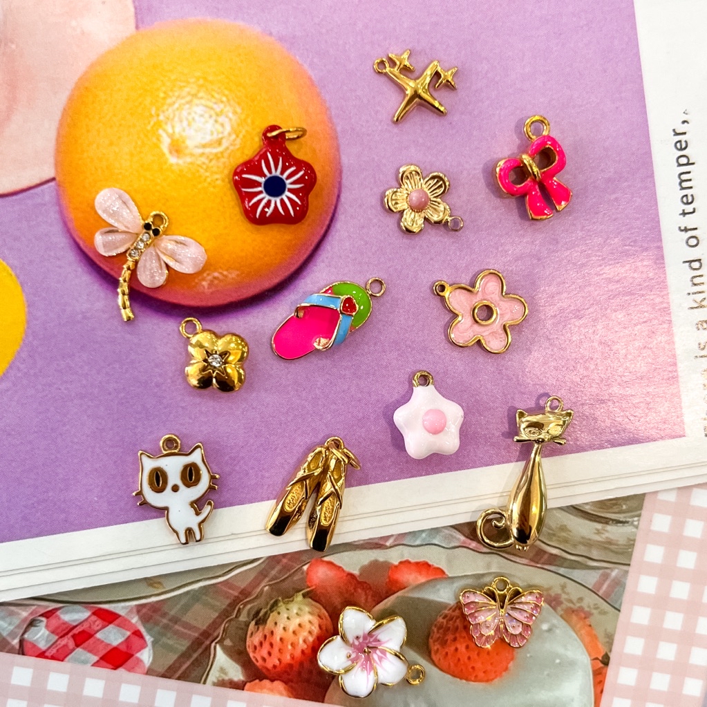 Stainless steel charm cat flower dragonfly butterfly ribbon sandal clover pendant diy jewelry bracelet necklace 1pc